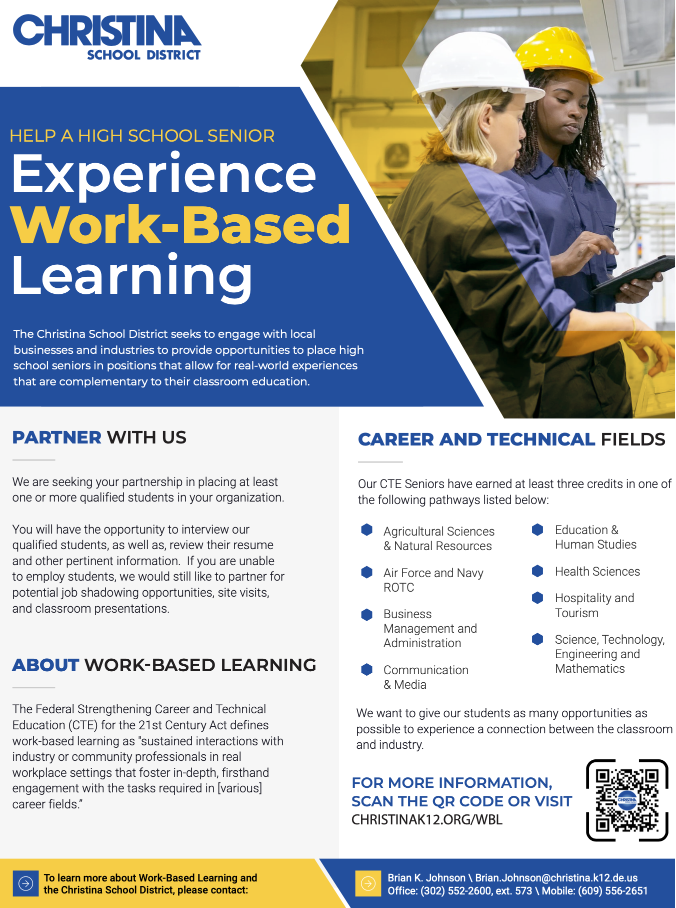 To learn more about Work-Based Learning and the Christina School District, please contact: